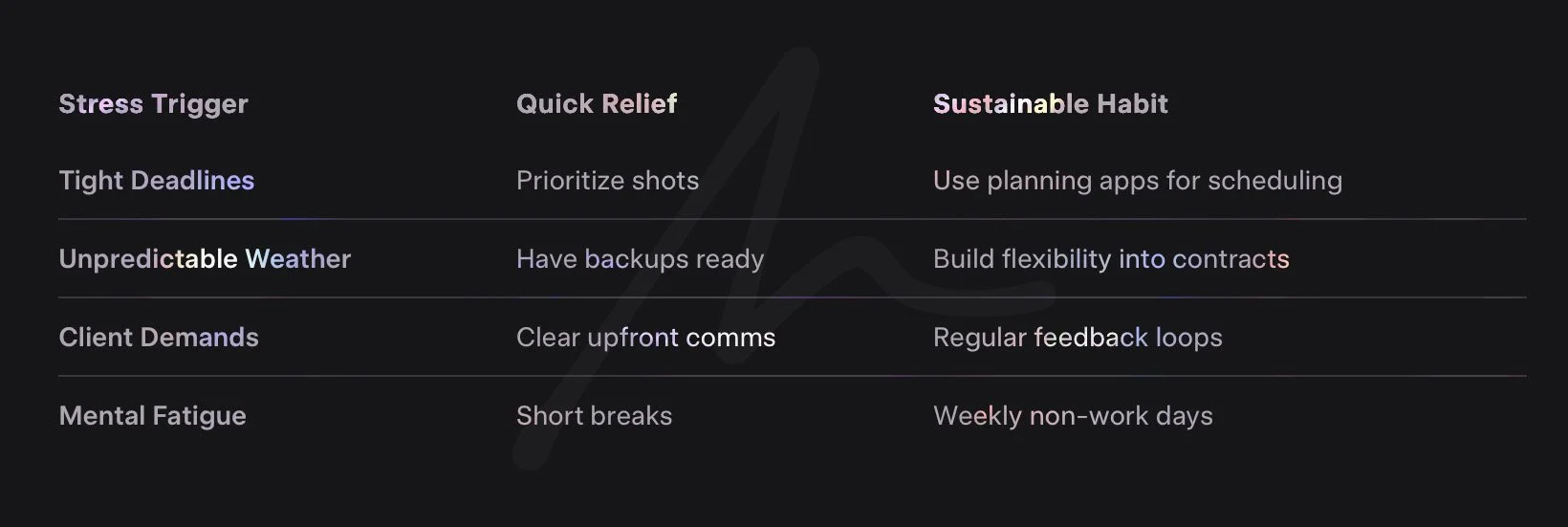 As you get more shoots under your belt, stress can build up— but simple routines will help you handle it like a pro over time.